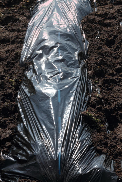 その後、土を被せ、マルチを張って作業完了です。
