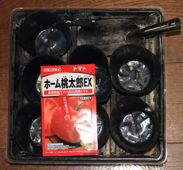 トマトの種は8ポット分に撒いていきます。何か3個多かった気がしましたが、3粒と4粒に分かれました。もっとも入れ忘れている可能性もありますし、タキイ種苗が3粒サービスしてくれたのかもしれませんね。