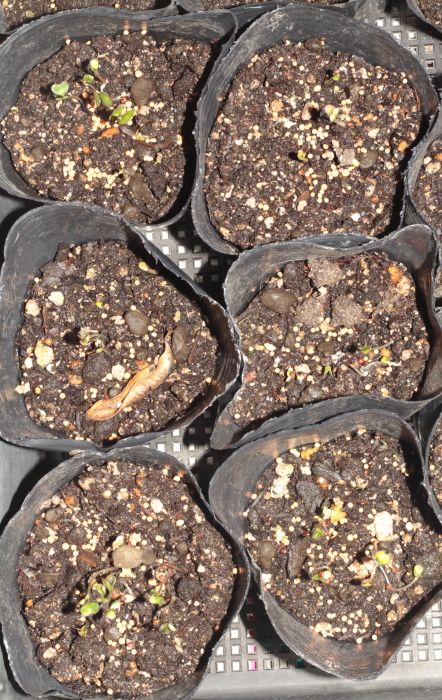 発芽が確認できたら、植物活性剤HB-101をポットに撒いて苗に活気を与えます。早く育てたいと言うのも有るので色々手を打ちましょう。