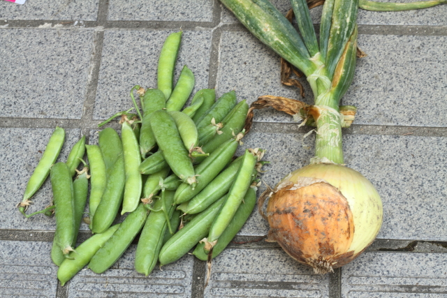 今回の主役は、ウスイエンドウ、OP黄タマネギ、そしてメイクイーンという、野菜達です。