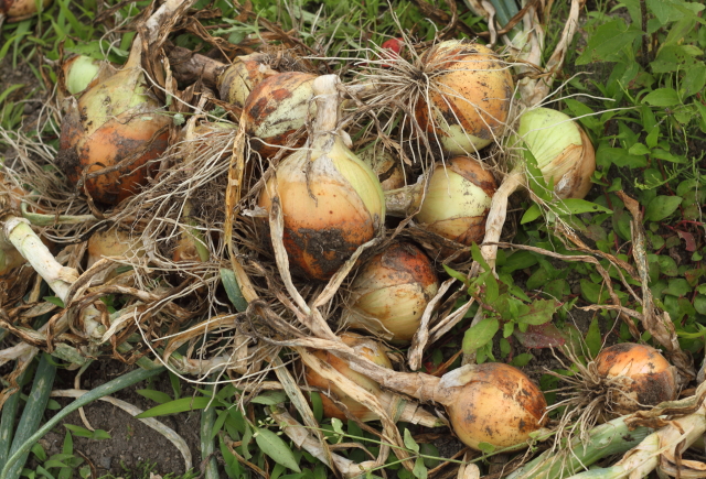 今シーズンは苗の定着が悪く数的には少なめの収穫になりました。が、我が家で使うには十分な数です。結果としては、やや失敗のタマネギ作りでしたね。