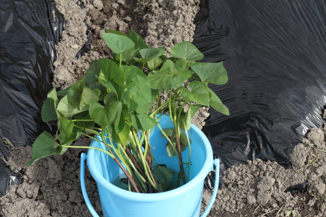 サツマイモの植え付け