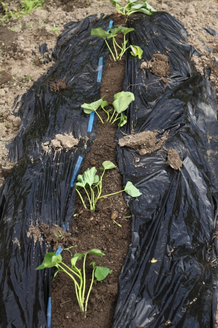 タマネギの後作としてサツマイモを植え付けしました。