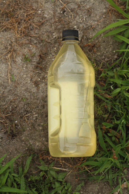 鷹の爪天然農薬の量は1.8リットル作成。弟が飲んでいるジンのペットボトルが空いていたので詰めて家庭菜園へ持って行って、ジョウロに入れてキャベツに全部かけておきました。今までのロハピーのスプレーボトルでは埒があかず、一気にキャベツにぶっかけました(笑)これが一番かもしれませんね。