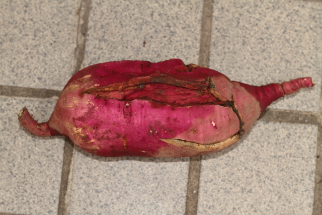 収穫したサツマイモは写真の様にボロボロ・・。割れまくっています。一体何が起こったのかと調べて見たら今年の夏の猛暑の影響だったようです。