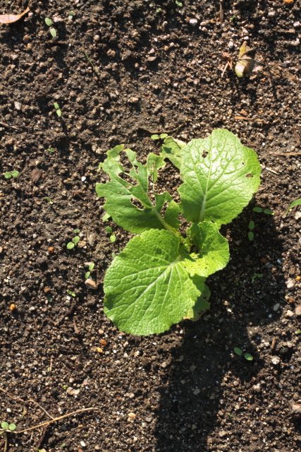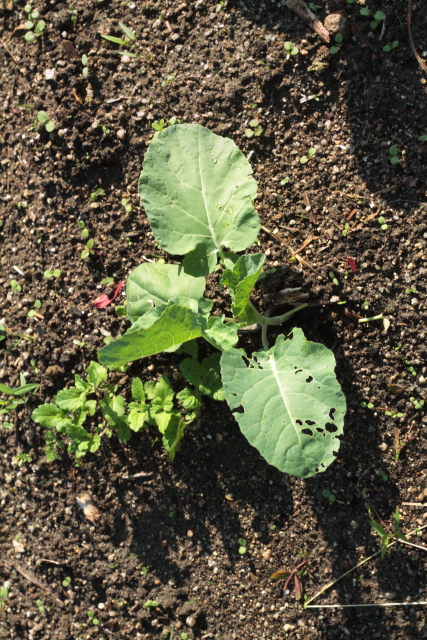 ハクサイ・ブロッコリー・タマネギです。今のところ順調ですね。油断すると枯れるのでしばらくは大事に育てましょう。追肥はもう少し後ですね。マルチを掛けてないので雑草が要注意ですね。