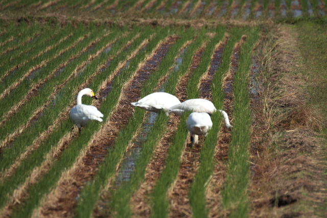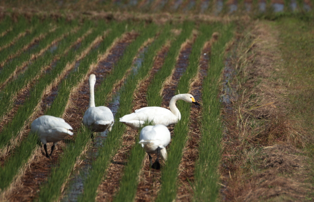 この時期には珍しいお客様、コハクチョウです。
